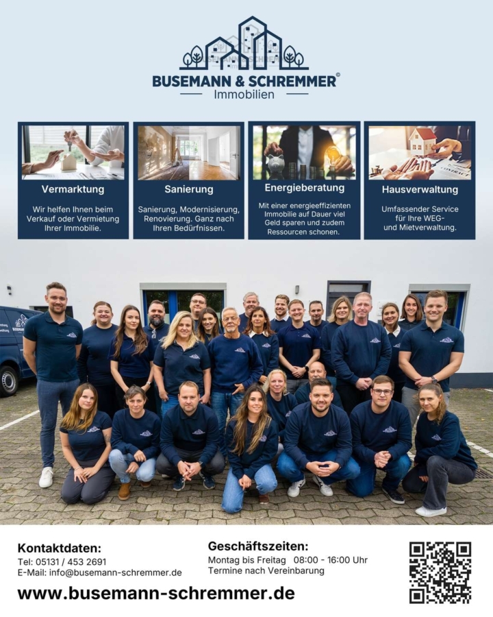 Ruhige und ländlich geprägte Lage in Husum (Landkreis Nienburg/Weser) mit angenehmer Wohnatmosphäre. Gute Erreichbarkeit der umliegenden Orte sowie der Stadt Nienburg mit sämtlichen Einkaufsmöglichkeiten, Schulen und medizinischer Versorgung. Die Immobilie eignet sich ideal für die Kombination aus Wohnen und Gewerbe (z. B. Praxis, Büro oder Laden), da der Standort gut erreichbar ist und ein solides Einzugsgebiet bietet.