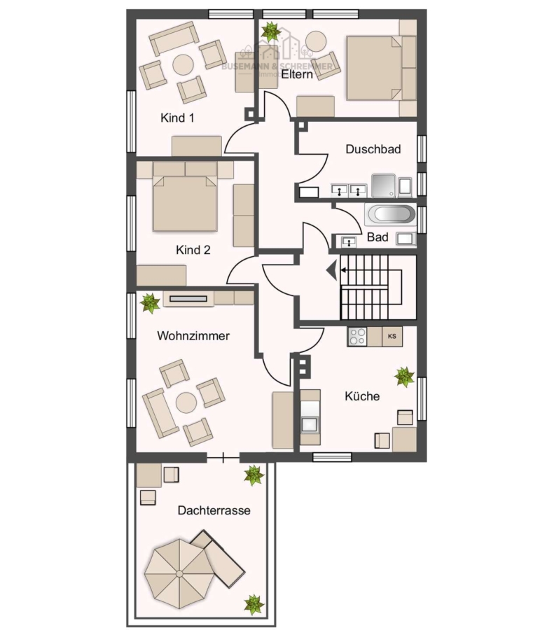 Die Wohnräume befinden sich in einem gepflegten Zustand, während insgesamt eine solide Basis für individuelle Anpassungen besteht. Zusätzlich bietet das Dachgeschoss Ausbaupotenzial für weiteren Wohnraum (vorbehaltlich Genehmigung).