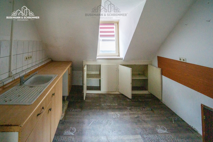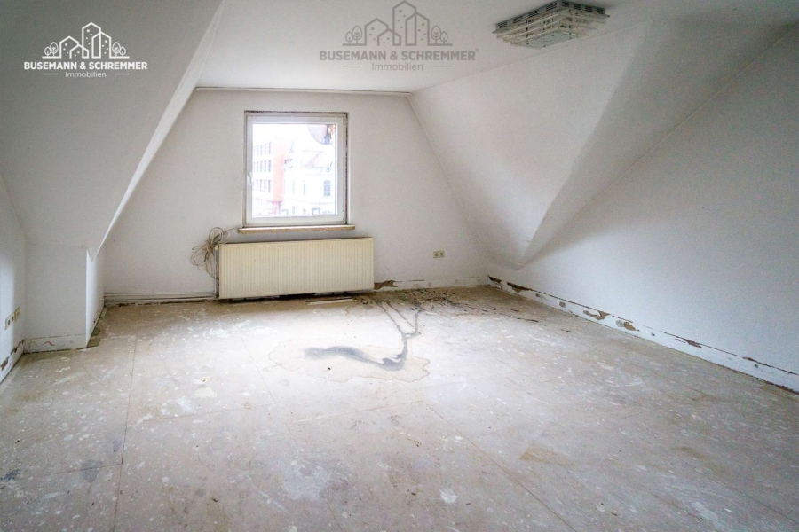 Im Erdgeschoss befindet sich eine Gewerbeeinheit, die derzeit gastronomisch genutzt wird. Der Mietvertrag vom 01.12.2025 ist befristet auf 5 Jahre und kann vom Mieter noch mal 5 Jahre verlängert werden. Kaltmiete € 1.500,00. In den oberen Etagen liegen zwei Wohneinheiten im 1. Obergeschoss und im Dachgeschoss. Beide Wohnungen stehen leer und sind renovierungs- bzw. modernisierungsbedürftig.