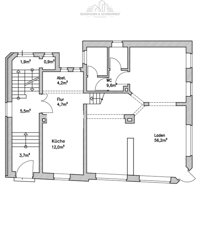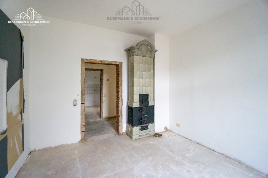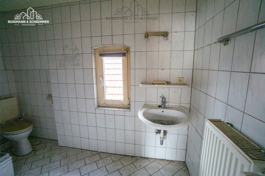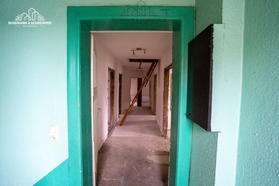 Das gesamte Objekt weist Modernisierungsbedarf auf, insbesondere im Bereich Dach, Fenster, Haustechnik sowie Elektro- und Sanitärinstallationen. Die Wohnfläche beträgt ca. 255 m², hinzu kommen ca. 86 m² Gewerbefläche im Erdgeschoss. Das Gebäude ist teilunterkellert und verfügt über einen nicht ausgebauten Spitzboden.