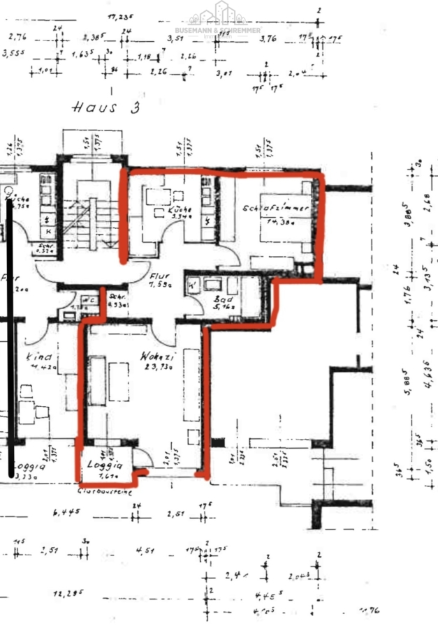 Vom Wohnzimmer aus gelangen Sie auf eine kleine Loggia, die zum Verweilen im Freien einlädt. Große Fensterflächen sorgen für viel Tageslicht und verleihen der Wohnung eine angenehme, helle Wohnatmosphäre.