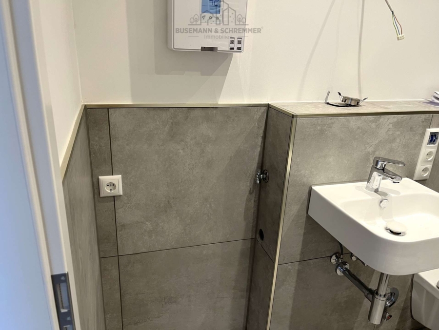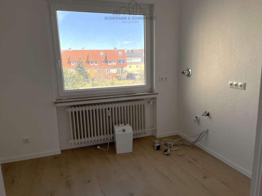 Die Wohnung wird als Erstbezug nach Sanierung angeboten und präsentiert sich in einem zeitgemäßen Zustand. In allen Wohnräumen wurde ein pflegeleichter Vinylboden verlegt, während das Badezimmer mit modernen Fliesen ausgestattet ist. Das moderne Badezimmer verfügt über eine bodenebene Dusche sowie einen Waschmaschinenanschluss.