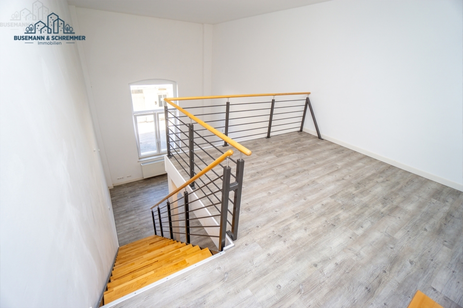 Über eine Treppe gelangt man in den ersten Stock, wo eine gemütliche Galerie vorhanden ist. Diese kann sowohl als zusätzlicher Wohnbereich als auch als Bürobereich genutzt werden. Darüber hinaus befindet sich im ersten Stock ein gut geschnittenes Schlafzimmer.